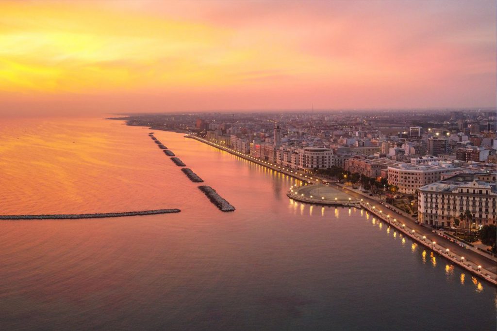 The waterfront represents a work completed during the fascism surrounding a large part of the city, and it is dotted with “lampioni.” They represent the undisputed symbols of Bari, always depicted in postcards, photographs, and author paintings: 197 iconic street lamps, existing since the 1930s, which adorn the three kilometers of road that go from the entrance of the port to “Pane e Pomodoro” beach. At night, while walking, you can sit down and rest in front of the sea on the characteristic wooden benches and have a sight of the Palazzo della Provincia, illuminated in red, white, and green that reflect the Italian flag.