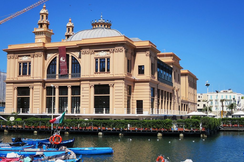 The Margherita Theater was built between 1912 and 1914 in the bend of the old port on pillars founded in the sea. The structure of the Margherita Theater was designed in complete Liberty style by Francesco De Giglio. After a long restoration, it was reopened in December 2018 and converted into a contemporary art museum. Its location is next to “Piazza del Ferrarese” and “Piazza Mercantile,” the main squares of Bari, and near to the old “Mercato del Pesce” and the old town.